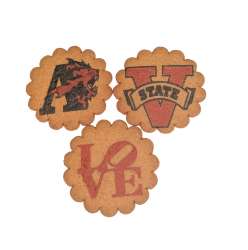 We will print any logo / image / photo that you upload, however please note that colorful images will always look best on either our white icing coated cookies. These ginger cookies are best suited for darker images / logos (such as the BLACK logos depicted in our thumbnail image), as the color of the cookie itself will compete with the printed image if the image you upload is too colorful or light colored. We recommend that you provide us with only BLACK and/or RED images or logos for printing to these cookies.