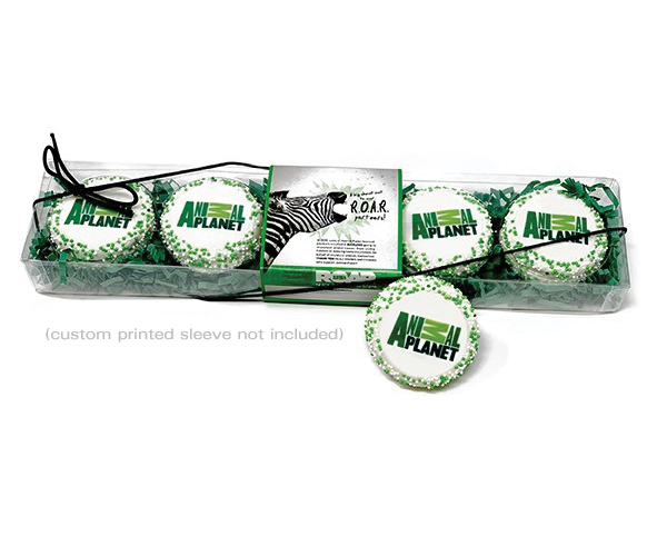 This stylish clear acrylic box contains 5 scrumptious Chocolate Covered Oreo cookies, each with your edible photo, logo or image!