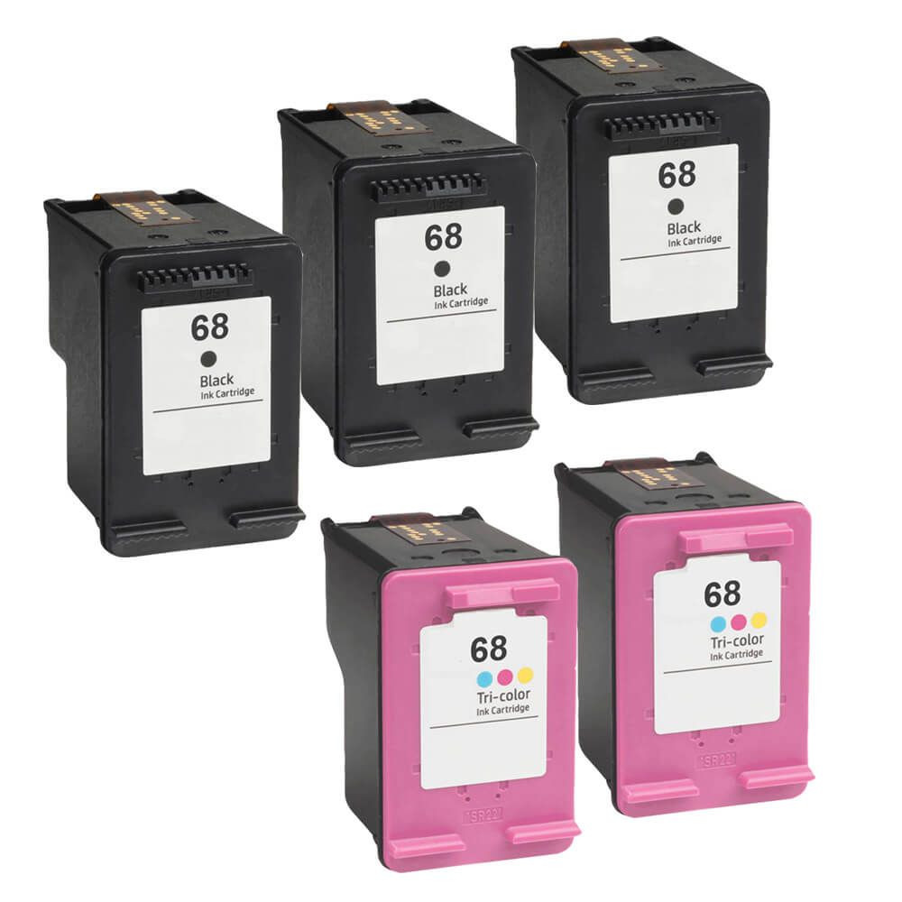 This is a remanufactured HP 68 (3 BLACK / 2 COLOR) inkjet cartridges combo. These cartridges are made to compare to the original in terms of both quality and page yield standards.