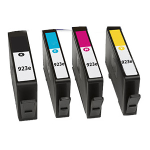 4 PACK Remanufactured HP 923e High Yield Ink Cartridges - includes 1 each Black, Cyan, Magenta, Yellow